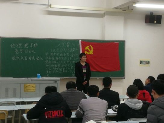 2018年12月5号晚上7点30分,德信体育官网物理本科生党支部在一号楼201教室召开关于吸收预备党员支部大会和预备党员转正支部大会。本支部5名党员,10名预备党员,8名发展对象参加了本次支部大会。会议由支部书记安星同志主持。