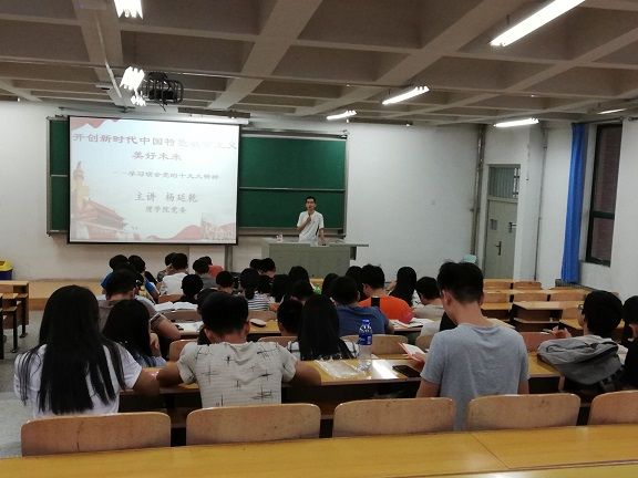 在喜迎中国共产党成立97周年之际,德信体育官网本科生党支部2018年7月5日晚在彭家坪校区1#406开展学习十九大精神专题党课,深入学习贯彻习近平新时代中国特色社会主义思想,推进习近平新时代中国特色社会主义思想“三进”工作。党课由德信体育官网辅导员杨廷乾老师主讲。