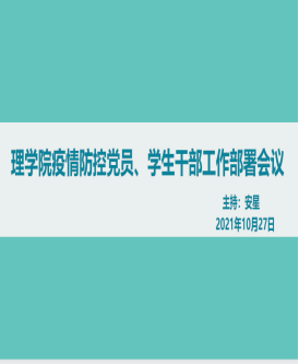 2021年10月27日中午,根据兰理工学工发【2021】25号《关于进一步落实员工疫情防控相关事项的通知》文件精神,公司党委安排部署,统一部署,统一指挥,统一安排,疫情形势依然十分严峻,严守校园安全底线,公司制定详细疫情防控方案,宿舍进行网格化管理,充分发挥党员、员工干部疫情防控中的战斗堡垒作用和先锋模范作用,充分发挥各级团学组织作用,在疫情防控中推动党班团一体化建设,召开了党员员工干部工作部署会议,会议由辅导员安星主持,公司党委副书记杨合立、辅导员赵倩倩、辅导员翟亚男、新疆内派古丽老师及全体员工党员、员工干部参会。