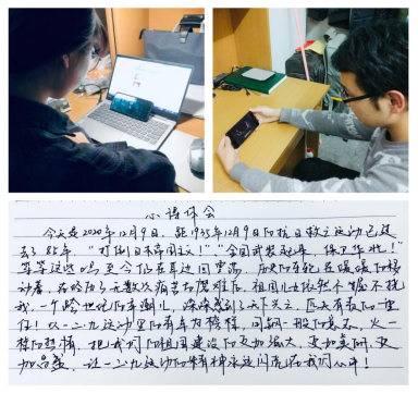 一部“一二·九” 运动纪录短片把同学们带回了1935年的北平,激动人心的历史再次展现在大家面前。“一二·九”运动举起了战争年代青年人爱国的旗帜。前辈们用他们的热情与勇敢,唤醒沉睡中的中国人,照亮前行的路。在85年后的今天,面对疫情突袭,中国青年再一次展现了时代的担当。观看短片之后,同学们纷纷写了观后感。2020级凝聚态物理专业的李羚表示:“一二·九精神”是老一辈无产阶级革命家崇高精神风范的生动写照,是我党宝贵的政治财富。今天,虽然时代不同了,但是我们依然要学习他们与祖国和人民同呼吸、共命运的精神,把实现个人的人生价值同建设祖国、振兴中华、服务人民紧密地结合在一起,甘于奉献、锐意进取、追求卓越、勇攀高峰。