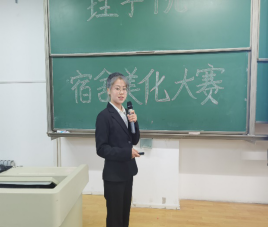 大赛开始,团委副书记刘琦对比赛评比方式进行了简单介绍,并呼吁大家用心生活,用心学习,让宿舍成为我们温暖的家。“志在高远,欲像齐天大圣般踏凌霄胸怀壮志”的“凌霄阁”、“ 山不在高有仙则名,水不在深有龙则灵,惟吾德馨”的“陋室”、“巾帼不让须眉,谁说女子不如男”的“飒沓轩”等都是此次大赛的参赛宿舍。大赛最后,开展了有奖问答环节,大家积极互动,使现场气氛更加活跃。参与此次大赛的评委本着公平、公正、公开的原则,评选出了多个优秀寝室以及最佳答辩人。最后,由团委副书记刘琦为此次大会进行了总结,他对同学们的创意和劳动成果表示了肯定,同时这也标志着2020级宿舍美化PPT展示大赛圆满结束。
