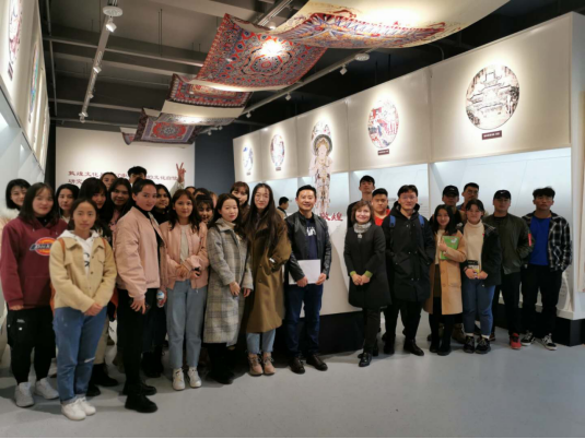 班会后,在班主任老师和阿曼老师的带领下,同学们来到图书馆展览厅,听取讲解员对敦煌壁画的内涵文化,壁画中体现出中国艺术,中国智慧,对古代文化的研究具有极其重要的参考价值,同时对现代建筑及室内装修启发作用,经过此次展览参观,同学们对敦煌壁画文化有了更深的了解,对中国艺术、古人智慧感到崇拜和敬仰。