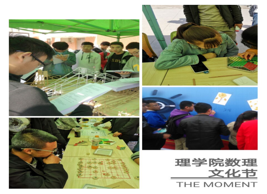 本次文化节吸引了大批同学前来参与,整个红柳广场热闹非凡。活动开展期间,数理文化科普展、数学建模协会宣传获奖展示、银杏叶制作简单力学模型、数字游戏、书法协会书写数理名人名言、工程开力学的各种模型展以等活动不仅吸引了公司员工,同样吸引了其他各个院的同学,用简单的方法展现了理工老员工的创新意识、发挥出自己的才华,其中,数学建模获奖展示最为引人注目,有众多同学询问如何加入数学建模协会、加入协会需要什么条件等问题,纷纷表示要向获奖的同学学习,协会的负责人对提出的问题进行了解答并对获奖作品进行了介绍。在挑战闯关模块中速算24、数独、九连环、跳棋、象棋,五子棋等活动,更是令人倾心。在活动期间我们与不同专业的同学交流,收获着不同的知识见解。实现了人人学有价值的物理数学科学,人人都能获得必须的数理知识,让同学们在体会游戏欢乐的同时,活跃思维。