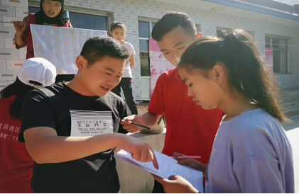 调研工作在支教工作的进行下也有条不紊的开展中,为了更好的完成调研工作,实践团分别通过家访、与孩子们沟通、从当地村委会干部了解实践地的教育情况这三种形式开展调研工作。部分队员走访大庄村、排子山村、大古都村、高崖村等当地村民,调查村民的文化程度和留守儿童的心理健康问题以及村里的一些惠民政策在当地的实施情况。并且团队成员向当地村民献爱心,让村民切实了解到十九大带给了广大人民群众生活保障。