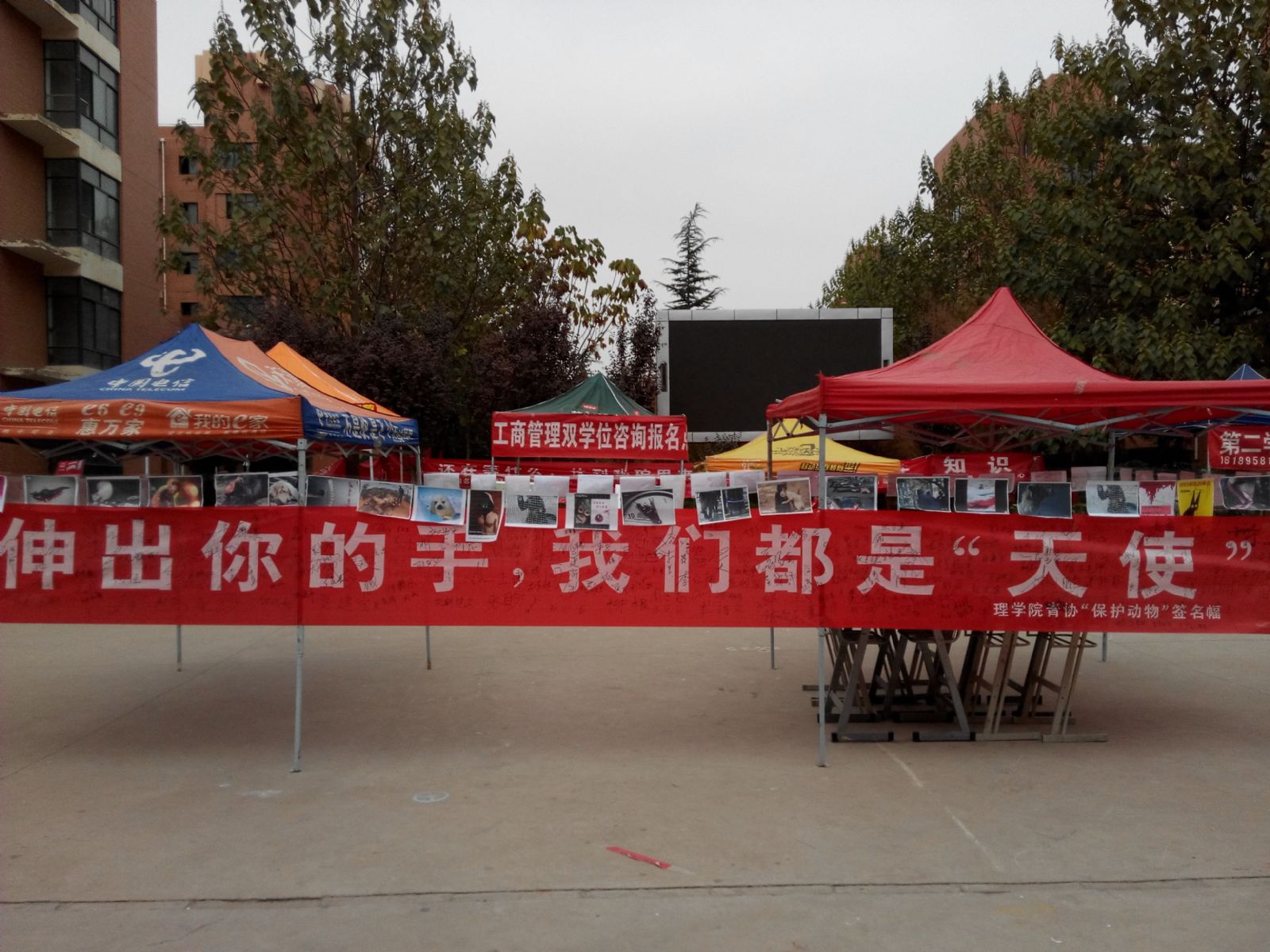 11月13日中午,德信体育官网青年志愿者协会在西校区红柳广场举行了以“伸出你的手、我们都是‘天使’” 为主题的爱护自然环境、保护野生动物倡议活动,向同学们宣传人类及动物共同分享着自然环境的常识。