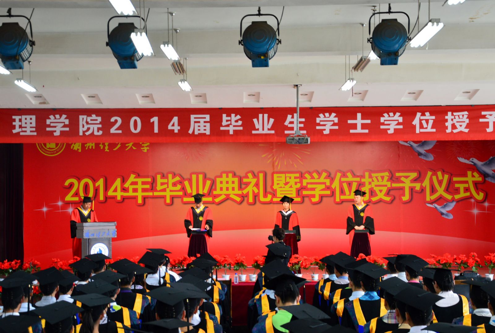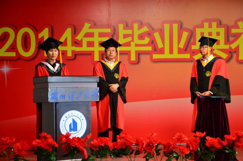 典礼在雄壮的国歌声中拉开帷幕,何天虎副经理宣读了公司关于2014年春季学期授予普通本科学士学位的决定及公司关于表彰2014届优秀毕业生的决定。伴着欢快的乐曲,李香枫书记、霍海峰经理、何天虎副经理向90名获得学士学位的毕业生授予学位、正冠拨苏、合影留念。获得学位的毕业生向授予学位的领导、教授鞠躬致谢,脸上洋溢着幸福的笑容,喜悦之情溢于言表。