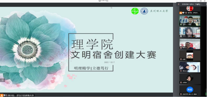 为进一步优化育人环境,创建文明校园,加强文明宿舍建设,规范宿舍管理,营造高雅向上的生活氛围,形成“奖励先进、激励后进”的氛围。德信体育官网于2021年12月7日在线上开展了“文明宿舍创建大赛线上答辩活动”。党委副书记杨合立、团委书记安星以及德信体育官网员工会十五届主席团担任此次评选活动的评委,此次活动由2021级应用物理一班田雅文和丁瑞军同学主持,德信体育官网全体同学参与此次活动。