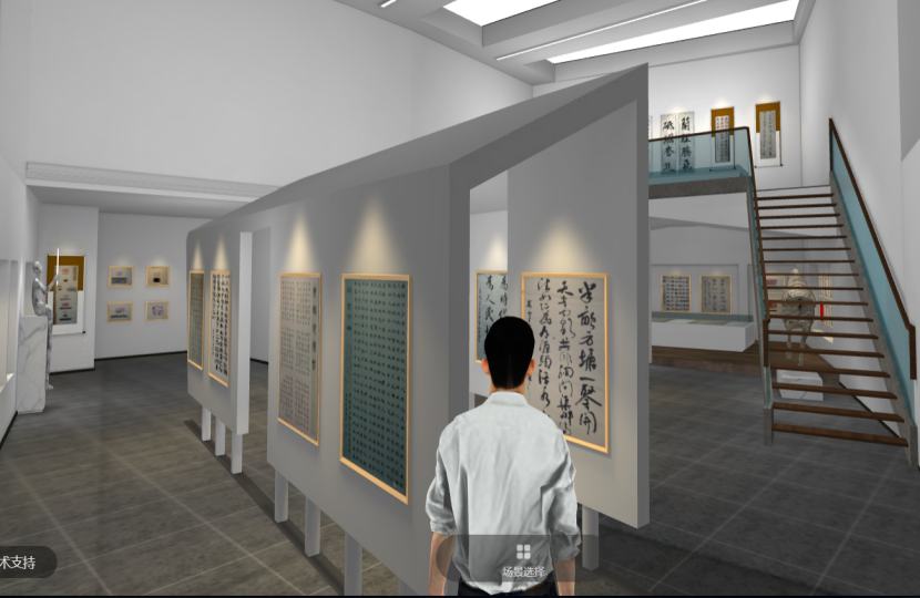 一二九纪念活动结束,“纪念一二九 书写爱国情”书画篆刻大赛线上作品展正式开始,值得注意的是,此次墨研月书画协会基于Web3D展示技术、通过3D建模、显示、交互三大技术特性,打破了传统展厅展示的局限性,将书画展搬到了VR展厅,通过元居科技提供的平台,融合AI人工智能、云计算技术和VR虚拟现实技术,构建映射现实的数字VR展厅,通过自定义角色带来视听盛宴。老师、员工们一同进入线上VR展厅欣赏书画作品。进入VR展厅内,各种书法作品顿时让人眼前一亮。此次赛事参展高校数目多,参赛范围广,参赛作品风格迥异,创意鲜明,各具特色,参展作品达95幅,充分展现了青年学子充满活力的艺术创作激情和健康向上的精神面貌,同时营造了良好的文化艺术氛围。品类包括软笔、硬笔、国画篆刻等,作品笔墨淋漓、激扬山河,书写着当代青年满满的爱国情,作品集思想性、艺术性、观赏性于一体,政治导向正确,吸引了大量的同学前来参观。各位领导随后对此次入展作品进行点评。