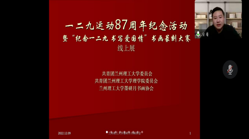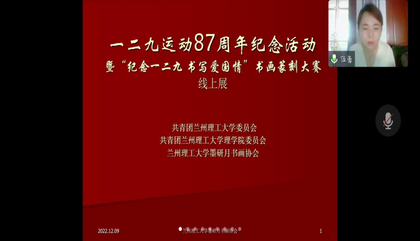 在“一二·九”运动87周年纪念日来临之际,为激励广大青年员工继承和弘扬“一二·九”精神,增强历史使命感和时代责任感。12月9日上午,由德信体育校团委主办,德信体育官网团委、墨研月书画协会联合举办的一二九运动87周年纪念活动暨“纪念一二九 书写爱国情”书画篆刻大赛线上展在腾讯会议室线上进行,以此来重温革命先辈光辉的奋斗历程,以实际行动展现我青年员工爱国进步、共赴国难的光荣传统。