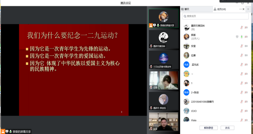 开幕式结束后,由墨研月书画协会第二十七届负责人郭委通过详实的历史资料及照片带领同学们知古鉴今,了解那段历史,重温他们的澎湃,不仅缅怀过去,追念先人,更是让同学们不忘国耻,振兴中华。