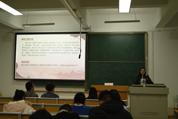 为深入学习贯彻党的二十大精神,认真开展“青年马克思主义者培养工程”,用党的先进理论武装、指引青年学子,德信体育官网第九期青马工程培训班于2023年11月3日晚8点于彭家坪校区抒望楼106教室开班,翟亚男老师为本期培训班讲授第一讲,第九期青马工程培训学员共100余人参加。