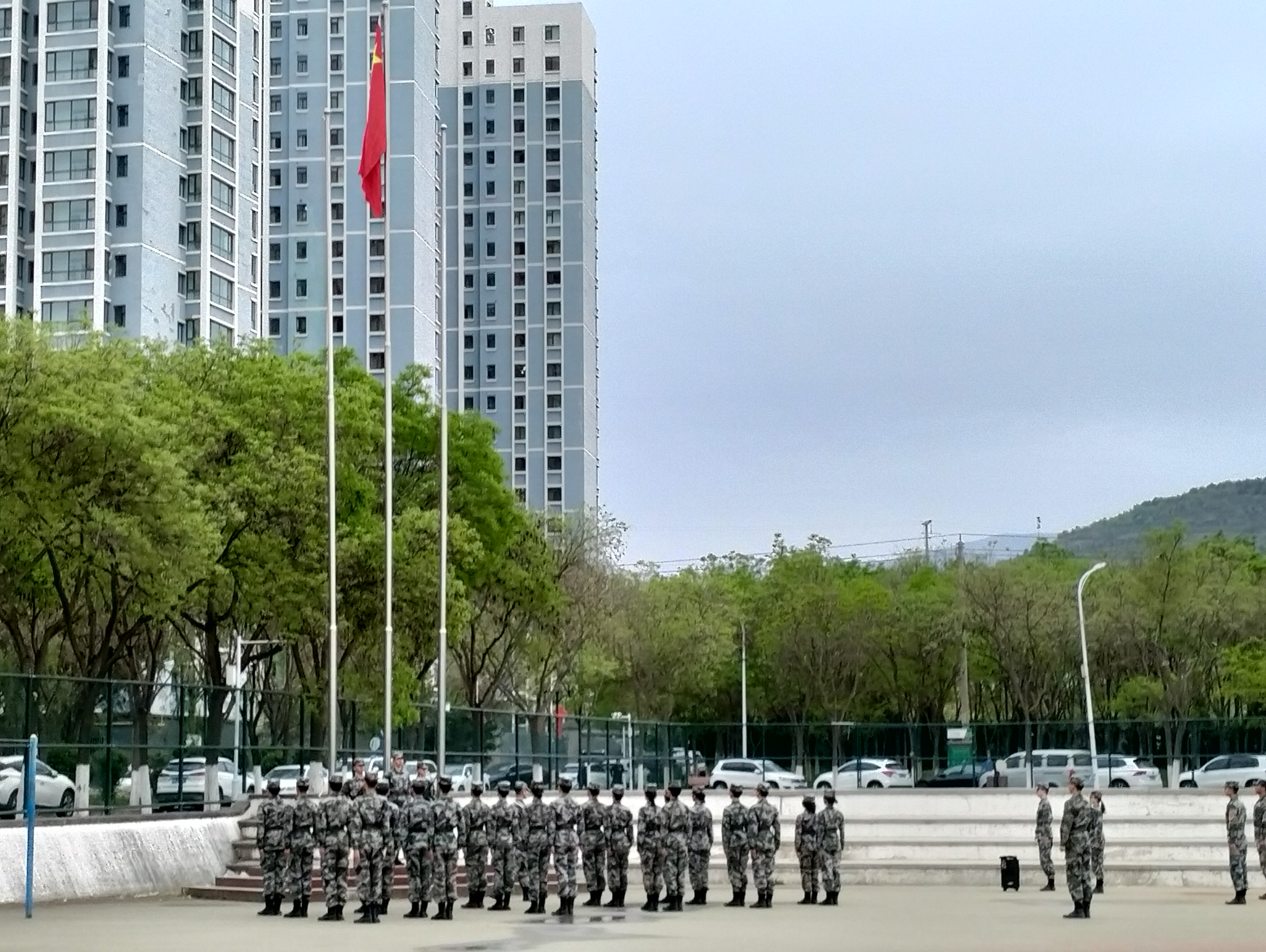 国旗护卫队的旗手们迈着铿锵的步伐,以饱满的热情,庄严地护送国旗正步走向旗杆。随着《义勇军进行曲》的奏响,五星红旗冉冉升起,在场师生满怀崇敬,面向国旗行注目礼。随后在国旗下进行微团课,辅导员翟亚男带领同学们共同学习五四精神。
