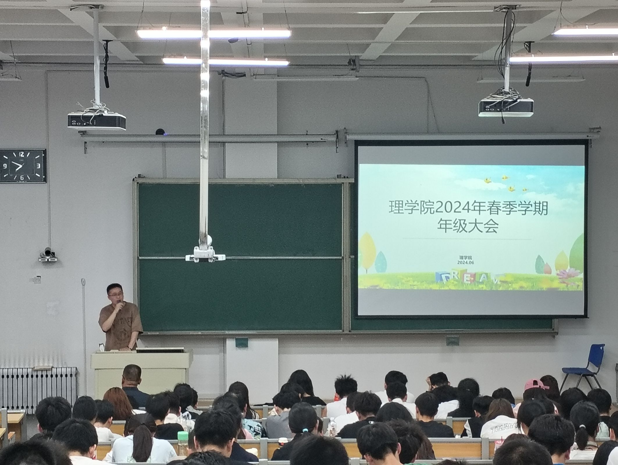 为进一步强化思想引领,提高员工安全意识,引导员工做好学业规划,6月13日晚,德信体育官网在观成楼308教室召开了2024年春季学期年级大会。会议由辅导员王开阳主持,2022级、2023级全体本科生参加。