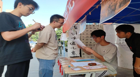 本次活动征集的图片和书画作品以“红色记忆”为主题,通过图片、诗词、书画作品聚焦重大历史事件,回顾祖国波澜壮阔的发展历程,激励同学们继承和发扬伟大的爱国主义精神。活动现场,一幅幅精美的书画、图片作品吸引了众多同学驻足观看。每位同学在志愿者的讲解下了解图片、书画作品背后的故事,并通过书写了革命先辈的名言警句制作书签、诗词问答、写下对祖国的祝福等形式表达了对祖国的热爱和对革命先烈的敬仰。