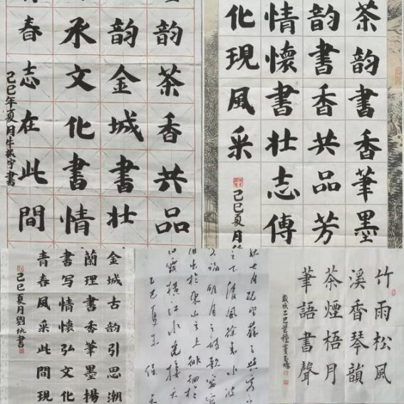 本次比赛共征集到硬笔书法、软笔书法、国画、篆刻等各类作品50余份。作品主题鲜明,内容丰富,形式多样,其中楷书作品尤为突出,隶书、行书、篆刻及国画作品也各具特色,充分展现了兰理工学子深厚的文化底蕴和卓越的艺术才华。比赛评选现场设置专业解说岗,由社团骨干对参展作品的创作背景、艺术内涵及技法特点进行讲解,帮助参观者深入理解作品传递的情感和意境。同时设置创作体验区,提供纸笔墨砚等,鼓励参观者现场体验,亲身感受书画艺术的魅力。互动环节准备了书签、卡纸及空白扇面等精美礼品,作为纪念品赠送参与同学。