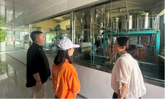 走出博物馆后大家来到了凉州区金塔镇青铜村,实践队员们在村支书王永霞的带领下,走进田间地头、农家小院与村办企业,深入了解乡村发展的现实图景。在村办的榨油坊中,现代化设备轰鸣,金黄的胡麻籽在低温碾压下化作清亮胡麻油,散发出浓郁醇香。队员们详细记录“青铜古法”榨油工艺的传承与创新,感受到特色产业在振兴路上所迸发的生命力。
