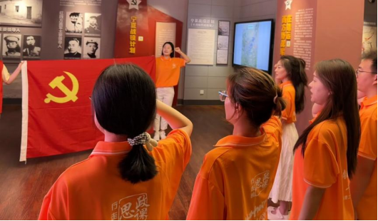 7月18日,实践队走进靖远县红军渡河战役纪念馆,开展“寻迹渡河战役筑牢青春信仰”红色学习教育。展柜中斑驳的军旗、草鞋,无声诉说着红军西路军强渡黄河的悲壮历程。参观结束后,全体队员面向党旗重温入党誓词,铿锵誓言在展厅久久回响。