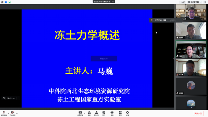 中国科公司西北生态环境资源研究院马巍研究员做了题为《冻土力学概述》的学术报告。报告人结合多年来的研究成果,重点介绍了冻土的基本特征、冻土力学的研究范畴和研究方法、冻土力学的发展历史和学科的形成过程、工程建设中面临的主要冻土力学问题以及冻土力学研究的未来发展方向。