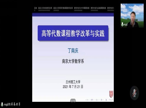 丁南庆教授作了题为高等代数课程教学改革与实践的报告,丁教授介绍了南京大学本科教学的改革中,教学内容与中学课程、后继课程以及做研究三者之间的衔接。教学的主要目的是为了激发员工兴趣、启发员工思考、培养员工能力。