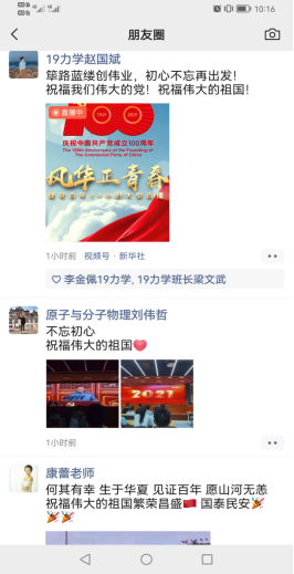 师生在朋友圈和党支部群发表感想