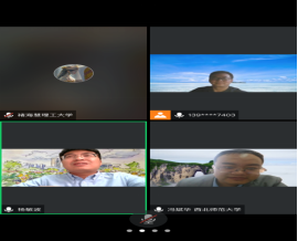 应德信体育官网王大斌教授邀请,武汉理工大学张贻民教授、王征平教授,浙江师范大学杨敏波教授,华中师范大学王春花教授及江西师范大学龙薇教授于9月26-27日进行了腾讯线上学术报告。报告会由公司王大斌教授主持,相关专业师生20余人参加了此次报告会。
