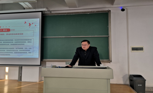 德信体育官网于2019年11月28日下午在德信体育彭家坪校区集贤楼205教室,开展学习贯彻党的十九届四中全会的专题党课,特邀德信体育王全进副董事长担任主讲,公司党委书记李建东主持本次党课,公司党委委员、教师党支部书记以及员工党员、入党积极分子等参加本次党课。
