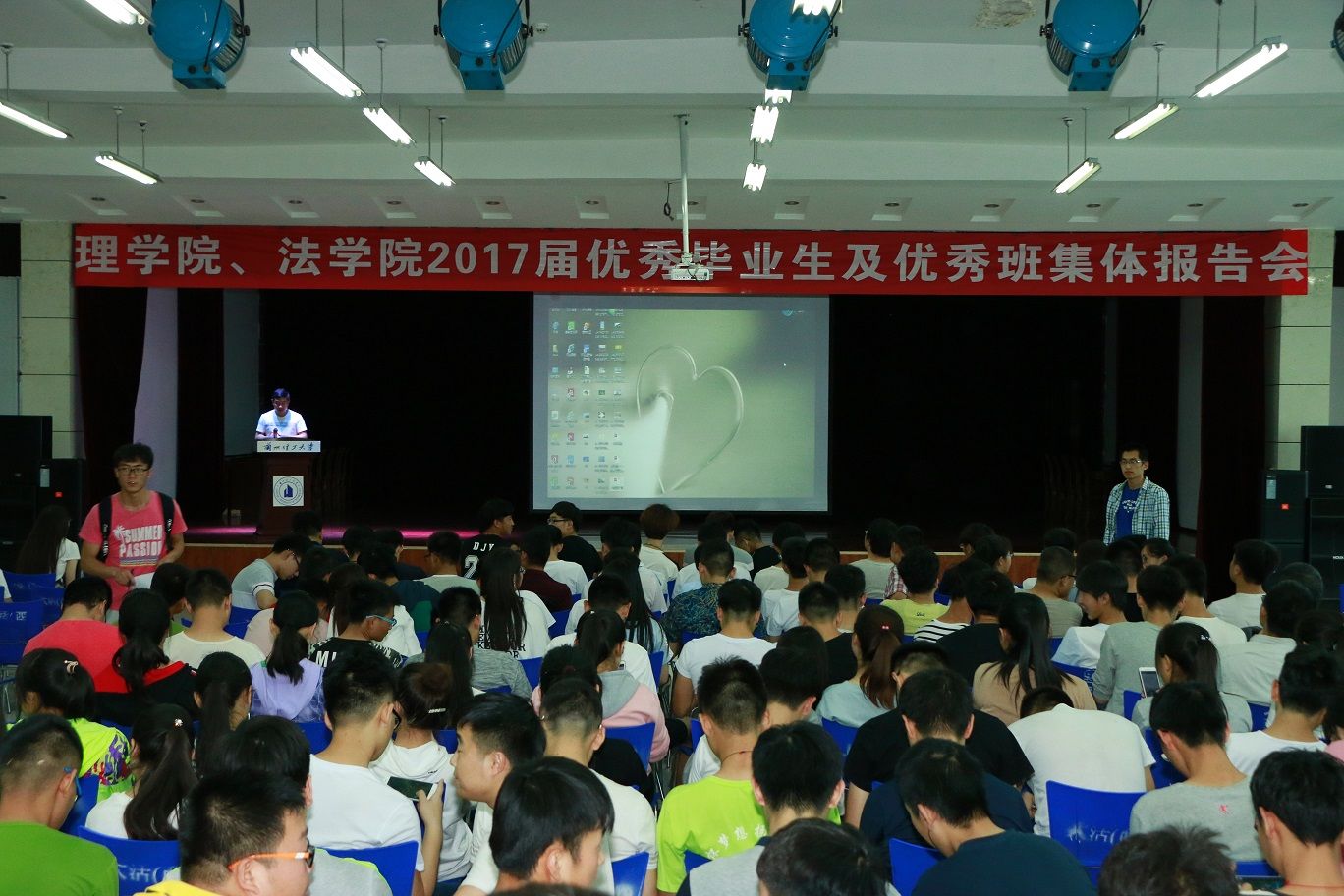 报告会上,2017届优秀毕业生代表信息与计算科学1班的罗佳丽同学讲述了自己的奋斗历程、学习心得和学习方法,根据自己的大学经历,就如何更好地处理学习与工作之间的关系,如何更好地学习专业知识,如何更好地培养科创能力与同学们做了深入地交流,帮助同学们消除在思想和学业上的迷茫和困惑,对同学们思考和规划老员工活,确定专业发展方向起到了积极的引导作用。同时,13级信息与计算科学1班荣获2017届优秀班级体称号,班长段嘉伟代表班级发言,通过精彩的PPT展示和富有激情的解说,展示了该班同学团结合作、热爱学习、积极进取、乐观向上的良好精神面貌,体现了良好的合作与友爱氛围。