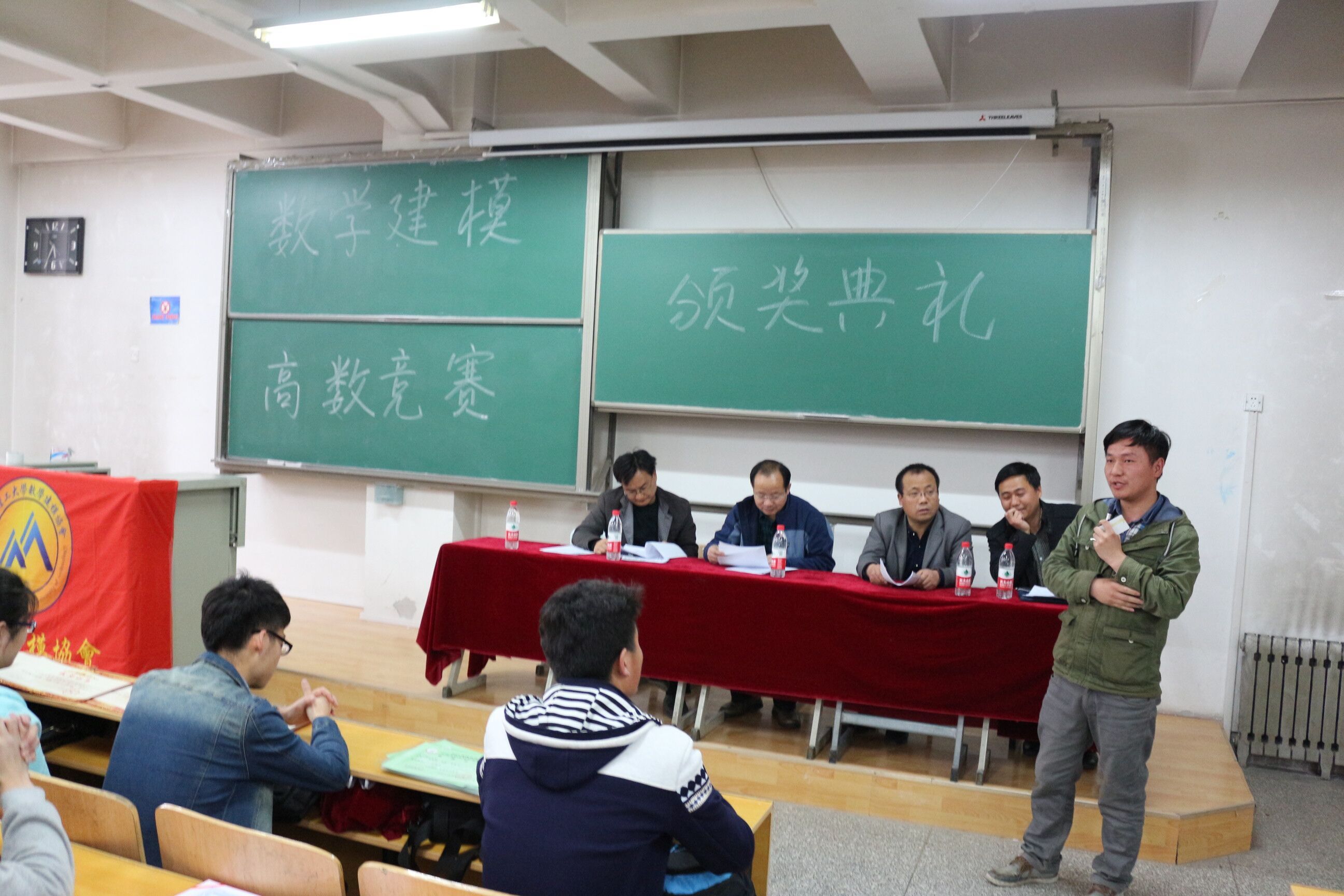 3月22日下午,德信体育官网数学建模科技创新基地和数学建模协会在西校区1号楼208教室召开2015年全国老员工数学建模竞赛和数学竞赛颁奖大会。德信体育官网数学教学部副主任马成业副教授、黄灿云教授、杨帆副教授、孟新友副教授和近200名获奖人员及协会人员参加会议。