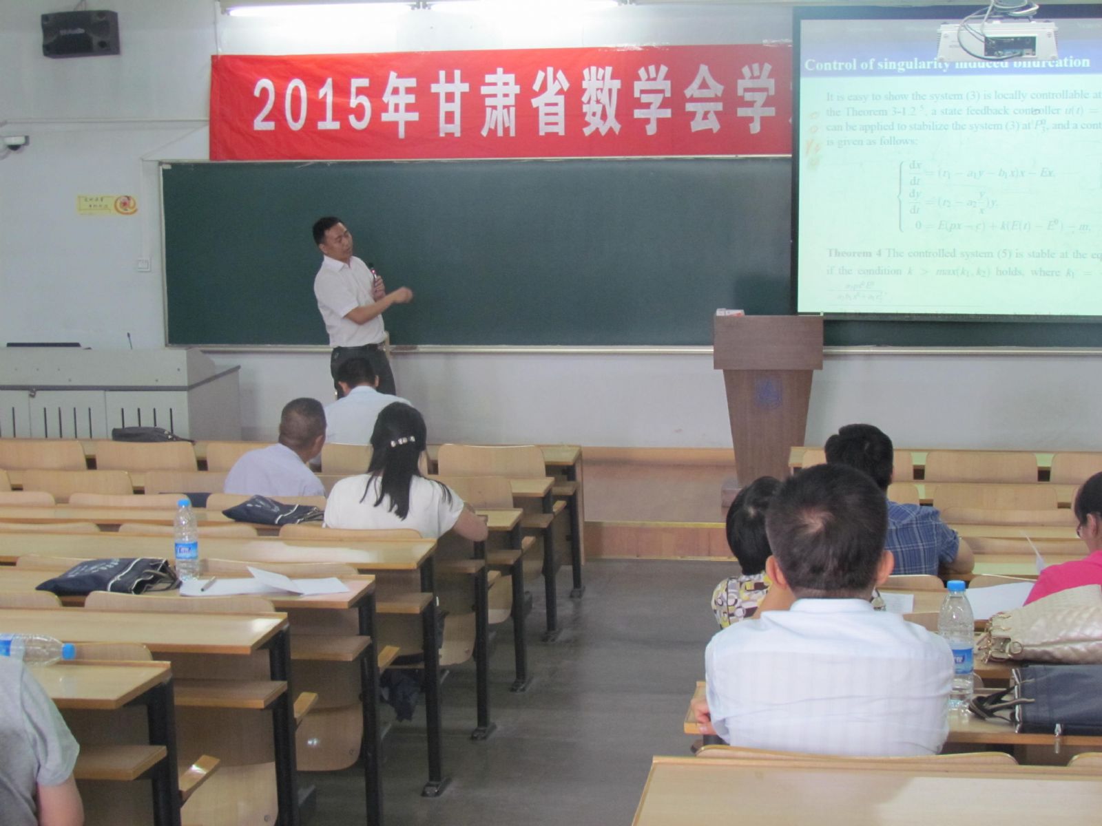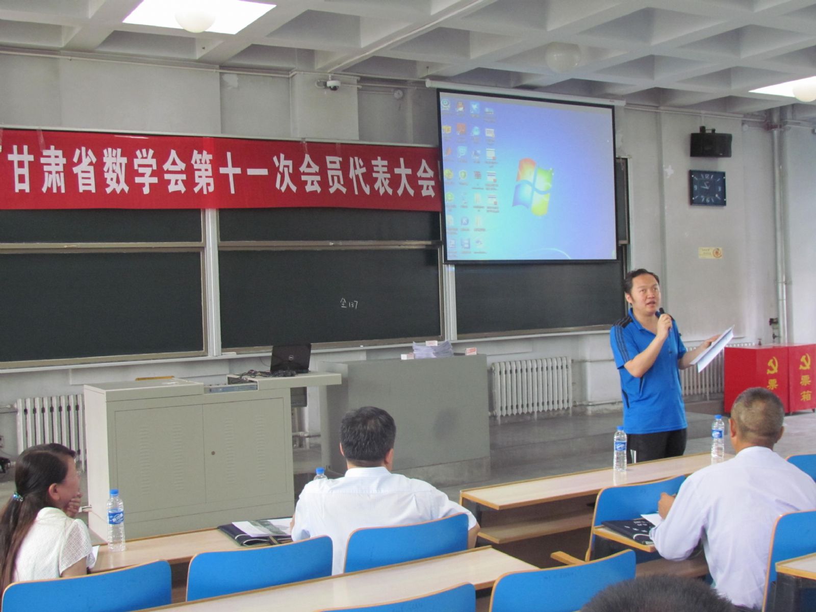 甘肃省数学会会员代表大会是我省数学教学与科研工作者最高层次的会议,每两年举办一次,2015年适逢省数学会领导与理事换届。在本次会员代表大会上,甘肃省数学会上届理事长李万同作了工作报告,甘肃省数学会上届秘书长王海明作了财务报告,并选举产生了甘肃省数学会第十一届理事会理事及学会负责人。兰州大学数学与统计公司经理李万同教授当选为新一任理事长,西北师范大学刘仲奎教授、西北师范大学马如云教授、兰州交通大学褚衍东教授、德信体育霍海峰教授等当选为副理事长。公司应用数学系欧志英教授、黎锁平教授、孙建平教授、夏亚峰教授、张民悦教授、田振际教授、杨胜良教授等成为省数学会八个专业委员会成员。