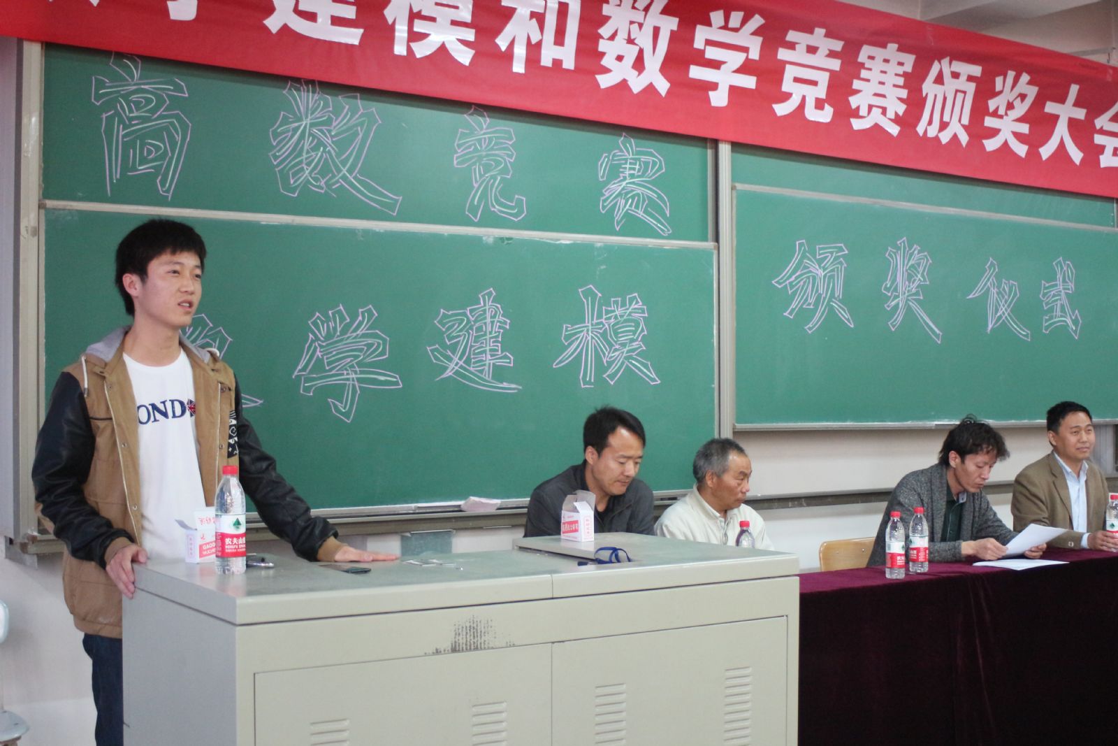 数学建模国家奖获奖代表尹自康及数学竞赛省级一等奖获奖代表杨春林同学分别发言,与大家分享了喜悦与收获。孟新友老师鼓励大家从现在开始认真准备,在2015年取得更加辉煌的成绩。