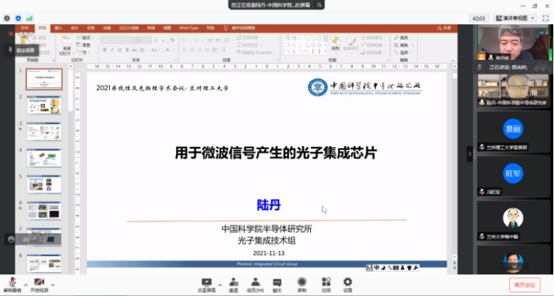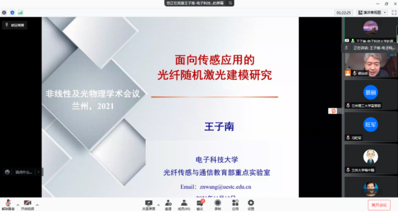 11月13日,德信体育官网应用物理系、计算机与通信公司及电气工程与工程公司共同举办了在线会议“2021非线性及光物理学术会议”。兰州大学信息公司副经理梅忠磊教授、中国科公司半导体研究所陆丹研究员、电子科技大学王子南教授、中国联通研究院贾武高工、中国科公司光电技术研究所王帅副研究员、桂林理工大学陈俊学副教授、深圳大学王茹博士后及北京交通大学谢彩健博士应邀到会。本次会议共有来自电子科技大学、桂林理工大学、北京交通大学、兰州大学、西北师范大学和德信体育官网、计算机与通信公司、电气工程与信息工程公司的师生90余人在线参与。