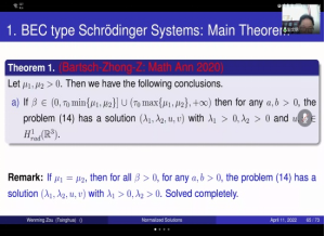 邹文明教授做了题为《关于薛定谔方程的正规化解》的精彩学术报告。首先,报告人回顾了变分法自上世纪七十年代末开始的几次研究热点及前沿问题。其次就最近的前沿问题正规化解问题做了详细而完整的综述。最后,邹教授针对几类具体问题讨论了正规化解的存在性及多解性。报告结束后,报告人详细解答了师生提出的相关问题,并鼓励年轻人勇于做前沿问题。通过此次学习交流,一方面让相关研究生了解了当前的学术前沿及热点,同时也加强了与同行之间的学术交流。