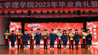 2019级工程力学专业韦忠德同学作为毕业生代表发言,诉说着对母校的不舍和对未来的展望。在校员工代表2022级微电子科学与工程专业董洁同学在发言中表达了对2023届毕业生学长学姐的真诚谢意和美好祝愿。经理欧志英教授在致辞中勉励毕业生:“”敢为人先,善于创新,敢于担当,勤于奉献,踊跃投身国家建设,并寄语广大学子能够身体力行,使社会主义核心价值观成为自己的基本遵循,肩负起社会责任。”最后,教授们为毕业生授予学位、正冠拨苏、合影留念。