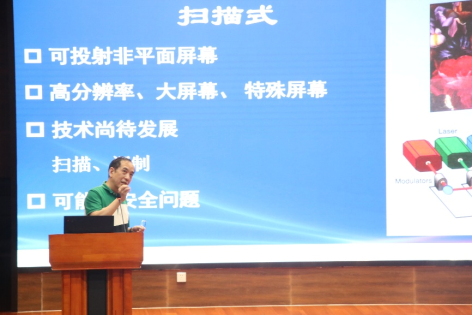 许立新教授作了题为“全色激光显示”的学术报告,主要介绍了全色激光显示整机设计理论及相关的关键科学与技术问题,包括激光光源模组、激光显示颜色管理、散斑抑制、显示芯片以及其它核心器件,介绍了中国科学技术大学的全色激光显示研发进展及相关应用等。