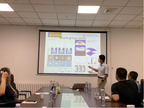 南方科技大学洪伟教授,针对聚合物网络的宏观性质、拓扑结构与其形成过程和条件内在联系的交互作用规律和物理机制,做了题为《聚合物凝胶力学性质的标度率》的学术报告。报告人及其团队,通过精心设计的实验,系统性地测量了一系列化学组分完全相同,但通过不同过程制备的水凝胶的力学性质,展现了凝胶的力学性质与其制备过程的强关联。随后,从高分子溶液的统计物理基本理论出发,借助三条关于聚合物网络拓扑及其演化规律的基本假设,严格推导了与实验结果完美吻合的标度率。最后,从断裂力学和疲劳实验分析的角度,揭示了凝胶断裂韧性与制备过程间的相关性,得到的疲劳阈值与合成条件间的标度率,相继验证了三条基本假设。