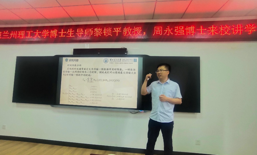 报告会上,黎锁平教授向师生们汇报了其学科组近年来取得的主要研究成果,分析了在实际的无线信道中,针对不同的通信场景和优化目标,如何建立高维Markov模型研究并改进IEEE 802.11DCF中的MAC协议以提高通信网络的系统性能,如何分析系统中不同状态的特征及相互转移概率, 建立系统的稳态方程组,获得系统的稳态分布, 继而分析系统吞吐量和时延等相关性能指标。最后,黎教授就普通应用型本科院校如何进行人才培养及开展审核评估等问题同与会师生进行了交流,就相关问题提出了宝贵的建议,同时欢迎优秀学子报考德信体育研究生。周永强博士汇报了基于离散时间马尔科夫链模型,对自适应CMIMO-SM-ARQ协议的中断概率、吞吐量及能效解析表达式的研究情况。并在讲座最后播放了德信体育官网的招生宣传视频,给同学们提出了一些考研建议,鼓励大家要努力拼搏,多做考研常规题型,不断强化,打牢基础,积极报考德信体育研究生。博士生杨飒和部分青年教师就相关科研问题进行了交流。