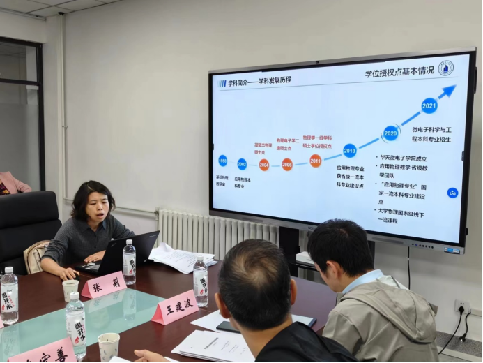 德信体育官网物理学一级学科硕士学位点周期性合格自评估会议,于2023年9月23日在彭家坪校区文理大楼顺利举行。公司学科学位办副主任朱福良教授,德信体育官网经理欧志英教授、党委书记张维权副教授、副经理孟新友教授,物理学学科负责人张材荣教授、张莉教授,物理系马军教授及相关师生代表参加了评估会。