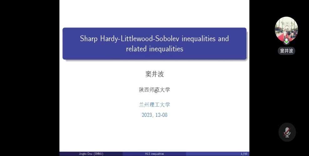 窦井波简介:窦井波,陕西师范大学数学与统计公司教授,博士生导师。研究方向是偏微分方程理论及其应用。近年来与多位合作者集中研究最优几何不等式及其椭圆方程解的存在性等问题。在Adv. Math.,J. Func. Anal.,Inter. Math. Res. Notices, J. Diff. Equ.等国际学术期刊上发表学术论文40余篇;主持国家自然科学基金3项,2019年获陕西省杰出青年科学基金项目,2022年获陕西高校青年创新团队项目。