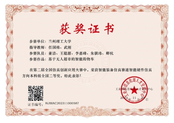大赛自启动以来,公司积极组织员工报名参赛,公司任国栋老师、武刚老师指导的董洁同学团队的作品《基于无人超市的智能购物车》(团队成员:董洁、王聪源、李嘉峰、朱骐玮、卿杭),以省赛一等奖的好成绩入围全国总决赛。总决赛采取“线上答辩”的形式开展,答辩员工董洁以扎实的理论知识和专业技能为支撑,对团队作品进行了全面而细致的讲解。她通过清晰的逻辑和生动的语言,将作品的创新点和实际应用价值淋漓尽致地展现出来;在实物展示运行环节,评委们更加直观地感受到作品所蕴含的技术含量和应用前景。凭借出色的表现,该团队最终荣获了智能装备仿真赛道智能硬件仿真方向本科组全国二等奖,为公司和公司争得了荣誉。