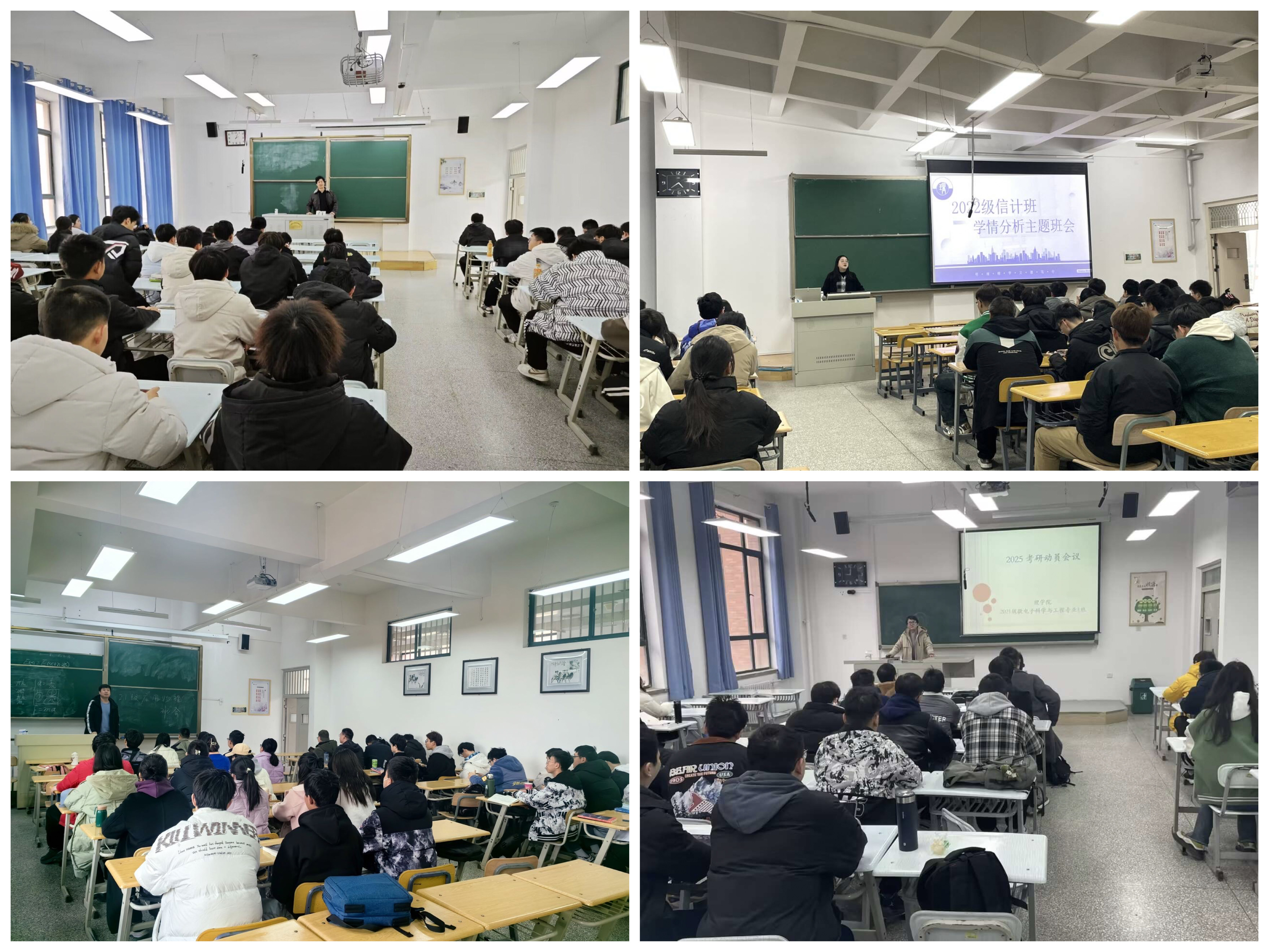 班会上,各班班主任对本班学年总体成绩、挂科率、挂科科目,班级最高加权平均分、同年级成绩比较等方面进行总结分析,注重聚焦弱势学科,剖析难点问题,并有针对性地提出学习方法的改进措施,并将本专业未来的就业方向、2023届毕业生的考研就业情况向同学们进行介绍。挂科同学也依次走上讲台剖析自己挂科的原因,制定新学期的学习计划。