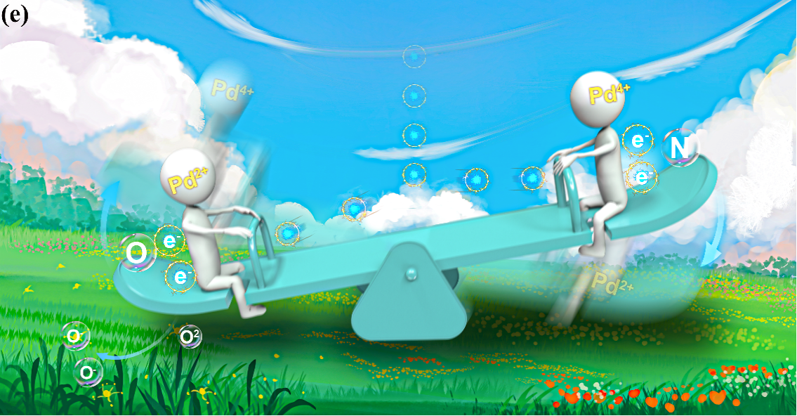 低温气体传感器的深入研究有助于便携式传感系统的发展。金属氧化物半导体基气体传感器具有高灵敏度、快速响应等优点,它也被广泛应用于环境监测、工业安全、智能家居等多个领域。但工作温度高、选择性差、环境因素影响大等缺点也限制了其在某些特定场合的应用。在此,针对工作温度高和探测极限有限等问题,团队开发了一种可在低温下高效检测乙醇和低浓度氢气的气体传感器,该传感器利用剥离的氮化碳(g-C3N4)在In2O3纳米管上均匀负载混合相氧化钯(PdOx),通过在In2O3纳米管和g-C3N4纳米片之间构建N-Pd-O电子桥,进行了合理的催化状态调节并引入了电子和化学敏化,降低了传感器的工作温度,提高了灵敏度、响应速度和检测极限,从而提高了爆炸性气体的传感性能,研究成果具有广泛的应用前景。