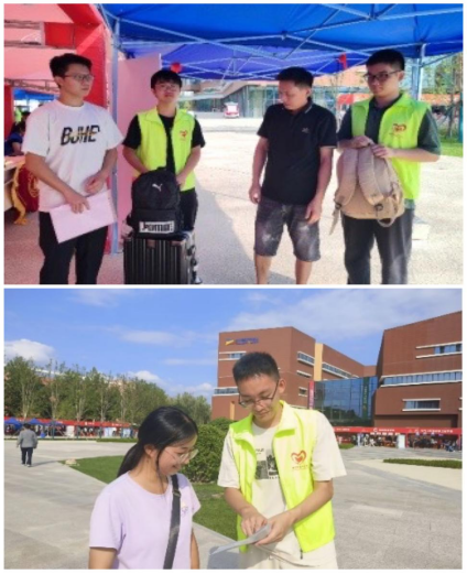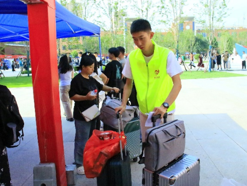 活动中,志愿者们在报到处集合待命,以饱满的热情帮助新生办理入学的相关手续,耐心解答他们的疑惑。在带领新生去宿舍楼的途中,志愿者们热情地为新生介绍教学楼、图书馆、宿舍等校园设施,让2024 级新生对公司的学习环境有了更为直观的感受,并耐心的回答新生及家长提出的问题,使新同学们可以尽快的了解、适应老员工活,此外,志愿者还组成“行李搬运小分队”,帮助新同学们减轻行李负担。