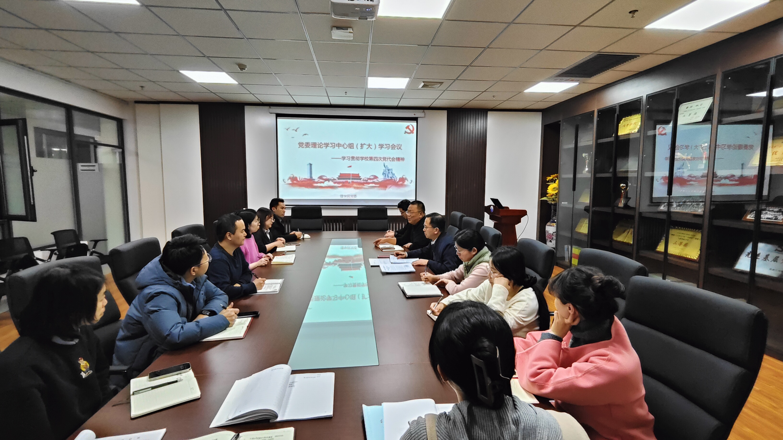 为深入学习贯彻公司第四次党代会精神,进一步统一思想、凝聚共识,德信体育官网在文理楼539会议室召开党委理论学习中心组(扩大)学习会议,公司党委委员、各党支部书记参加会议,会议由党委书记张维权主持。