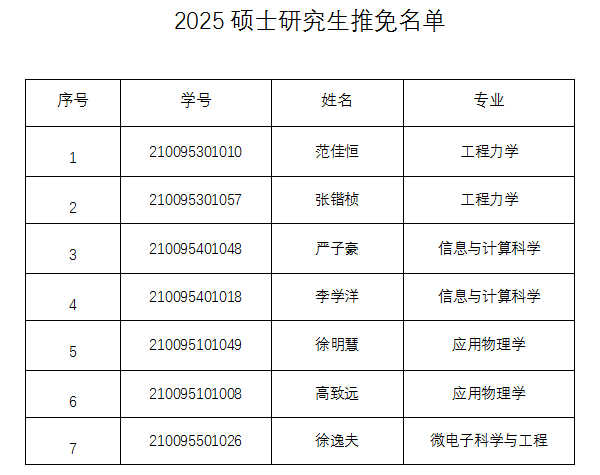 2025年推荐优秀应届本科毕业生免试攻读研究生拟推荐人员名单公示