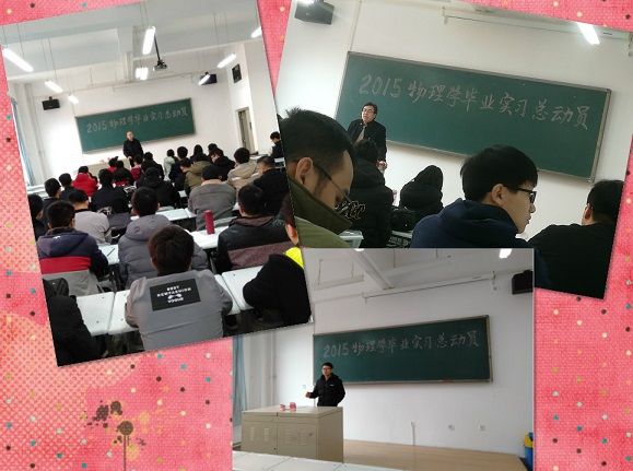 2018年12月25日中午13:00,2015级应用物理学专业毕业实习动员大会在西教4号楼312教室如期召开。本次毕业实习指导教师冯旺军教授,王向贤副教授和张晓锋博士3名老师以及2015级应用物理学全班48名同学参加。